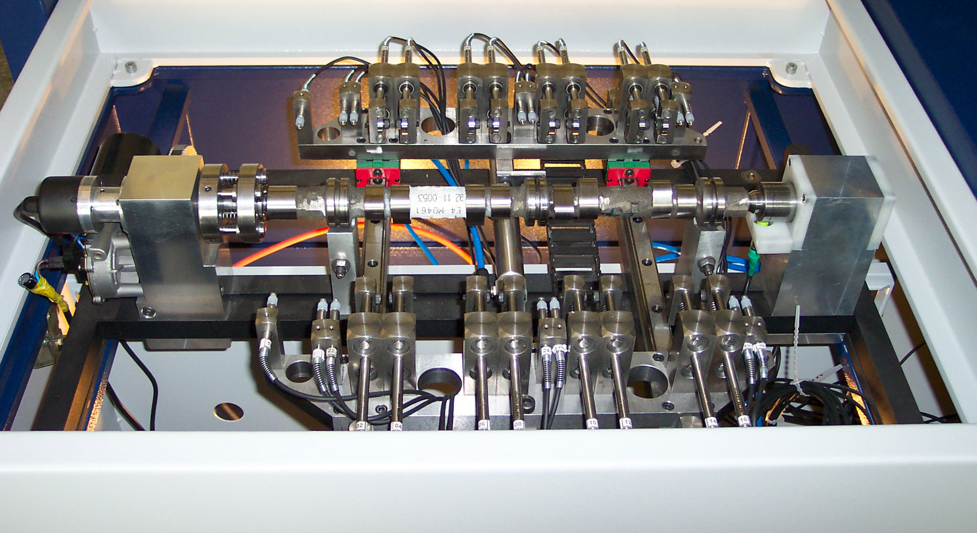 This computer-based multigauge system has been manufactured for camshaft journals and cam-height, cam-lift and base circles. The camshaft is manually fixed between two center-points and several LVDT probes touches the camshaft simultaneously. Then the part is rotated by a motor and all of camshaft measured values are displayed on monitor.